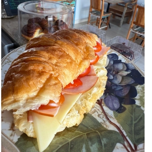 Nosso delicioso Croissant Parisiense recheado com peito de peru, Cream cheese, tomates cerejas, queijo muçarela e gelei... Ver completo