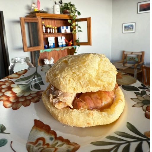 Pão de Queijo recheado com linguiça de porco com abacaxi